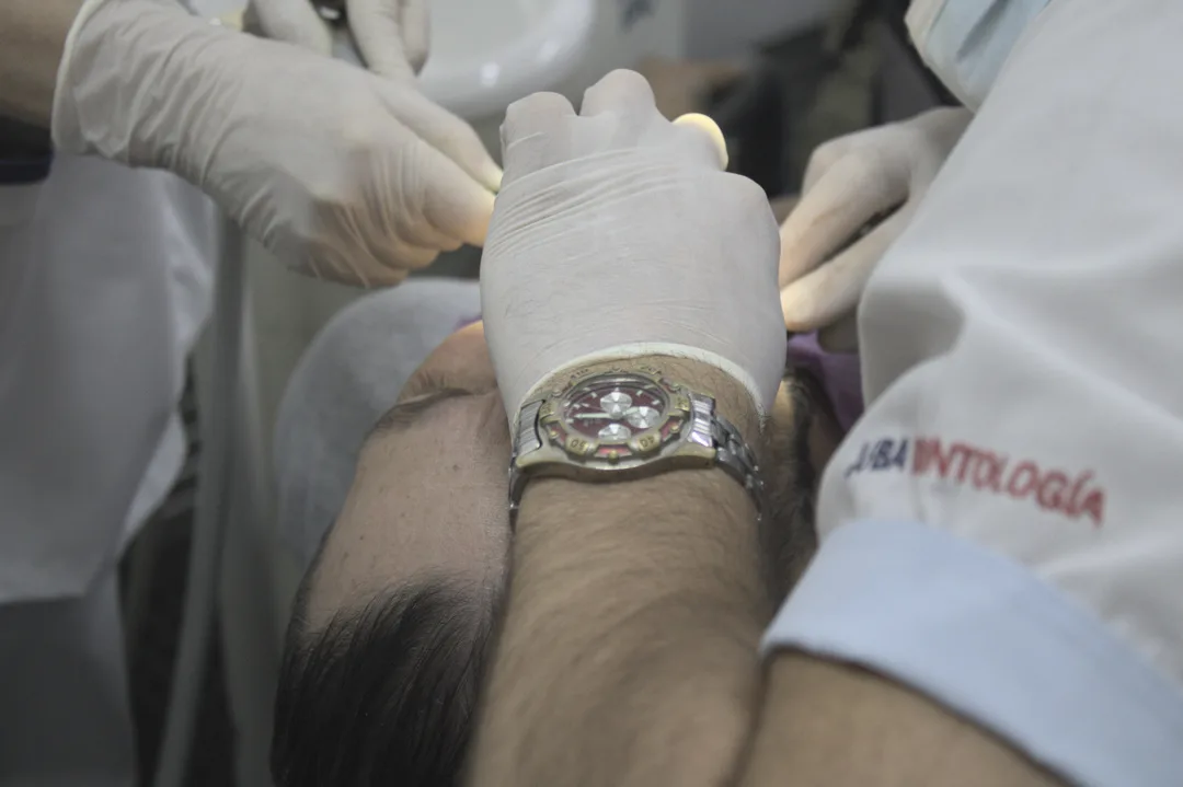 Para las 12 la fila no se había vuelto menos larga, pero varios profesionales ya no daban abasto. Llega un punto en que el agotamiento pone en riesgo el accionar de los odontólogos y es mejor retirarse que exponerse. Algunos imprevistos, mucha voluntad; a la medianoche llegaron 50 estudiantes avanzados y coparon todos los sillones. Todavía quedaban ocho horas de trabajo por delante.