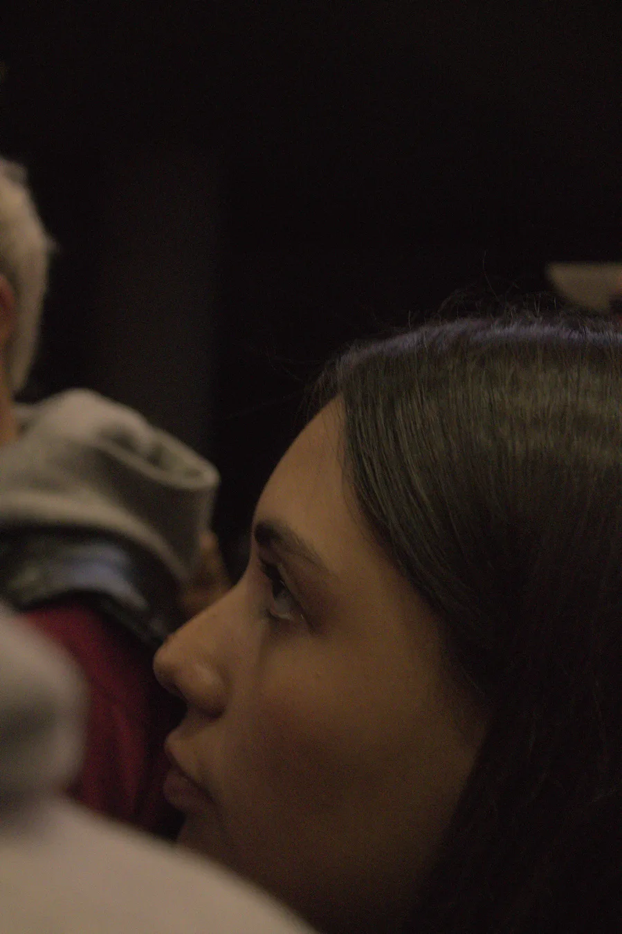 Antes de ingresar al Movistar Arena, el público se concentra en una amplia plaza de acceso frente a las entradas principales, donde se forman filas para pasar por los controles de seguridad con detectores de metales y revisión de bolsos. En estas áreas de espera, la gente se agrupa para ingresar. Una vez dentro del edificio, los amplios pasillos reciben a los asistentes con bares y puntos de venta de comida y bebida distribuidos estratégicamente, baños en varios sectores, puestos de merchandising, y señalización clara para ayudar a ubicar las diferentes entradas al estadio según el sector de cada entrada, todo ambientado con música de fondo y pantallas que muestran a los principales referentes de LLA y los libros que escribieron.